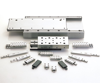 交叉滾子導(dǎo)軌是由精密導(dǎo)軌、滾子及保持架組成。保持架中交叉安裝有精密滾子,與精密導(dǎo)軌上加工的90。V形槽相配合。交叉滾子導(dǎo)軌是一種具有高剛性和高精度的緊湊直線運動副。作為一種直線運動軸承,由于使用了由大滾子的大接觸面組成的滾子體而具有了低摩擦、零間隙、無循環(huán)等特點,因此交叉滾子導(dǎo)軌被廣泛應(yīng)用于:辦公設(shè)備及外設(shè)設(shè)備、各種測量儀、工具磨床、光學(xué)工作臺、數(shù)控車床、電火花機、X射線裝置的滑座部分等。